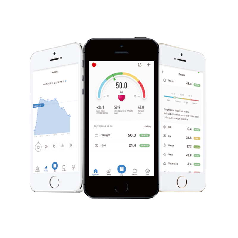 READ MORE Khả năng kết nối Bluetooth của Cân trọng lượng cơ thể thông minh BMI điện tử Bluetooth TM-906B cho phép người dùng xem và ghi lại các thay đổi về cân nặng, chỉ số khối cơ thể (BMI) và các thông tin thành phần cơ thể khác một cách thuận tiện thông qua ứng dụng điện thoại thông minh, cho phép theo dõi sức khỏe theo thời gian thực. Hoạt động thuận tiện này cho phép người dùng theo dõi tình trạng sức khỏe của mình bất cứ lúc nào, sau đó điều chỉnh hiệu quả kế hoạch ăn kiêng và tập thể dục để thúc đẩy lối sống lành mạnh.